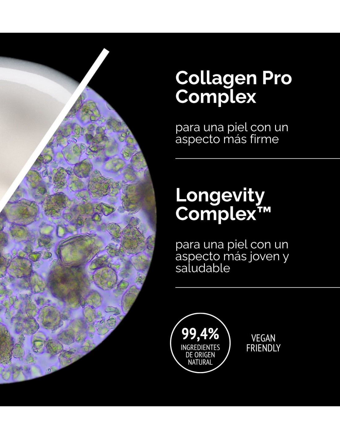 Descubre el revolucionario /skin regimen/Lx Longevity Collagen+ Serum, un sérum reafirmante con efecto relleno que deja la piel suave y tersa al instante. Su fórmula contiene Collagen Pro Complex, una combinación de 4 ingredientes clave que imitan y refuerzan el colágeno natural tipo I y III de la piel, y está enriquecida con el exclusivo Longevity Complex™, probado científicamente para proteger la piel de los efectos del exposoma —como la radiación UV, la contaminación urbana y el estrés diario— logrando un aspecto más joven, firme y saludable.